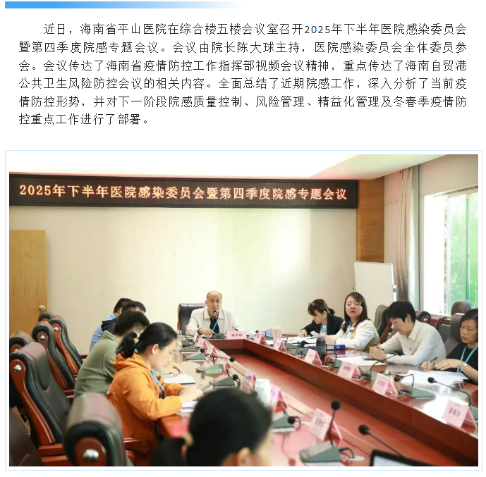省平山医院召开2025年下半年医院感染委员会暨第四季度院感专题会议