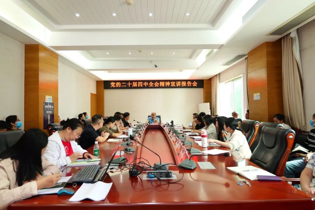 11月17日上午10时,海南省平山医院举行“党的二十届四中全会精神”宣讲报告会。会议由院党委副书记、院长陈大球主持,医院领导班子成员、中层干部及各党支部书记参加。