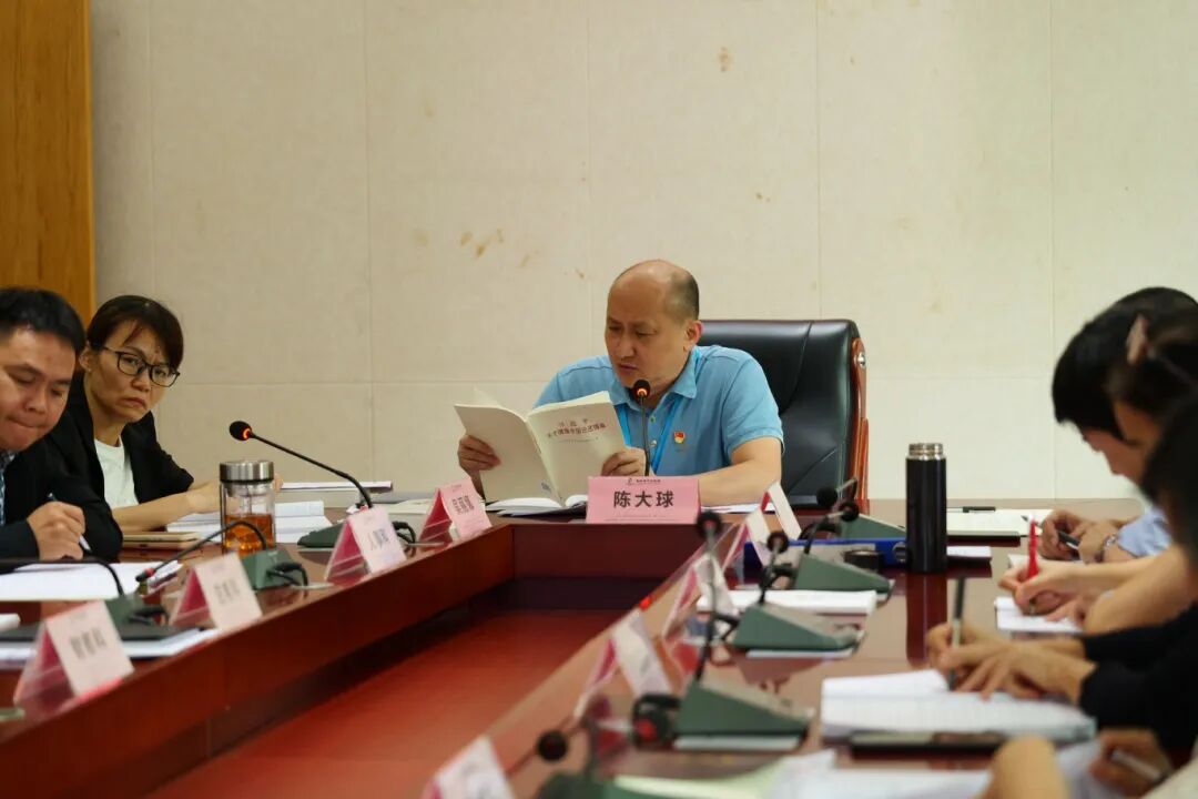 陈大球同志系统传达学习《习近平关于健康中国论述摘编》第五章“全面深化医药卫生体制改革”的核心要义,结合《健康海南行动实施方案》和《中国共产党党组工作条例》要求,指出要坚持以人民健康为中心,深化改革创新,提升医疗服务能力,筑牢党组织在医卫领域的战斗堡垒作用。