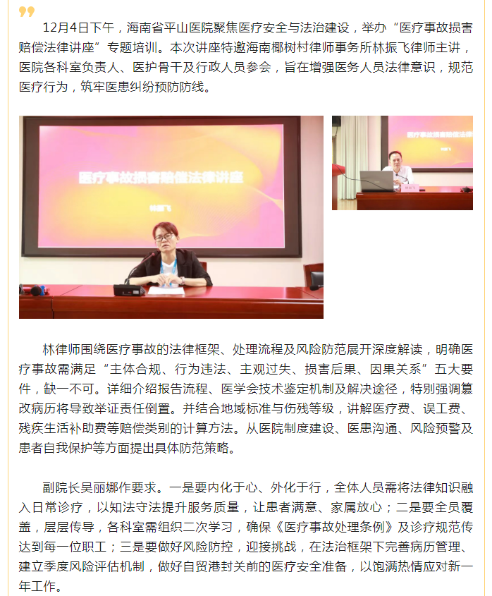 省平山医院举办法治专题讲座