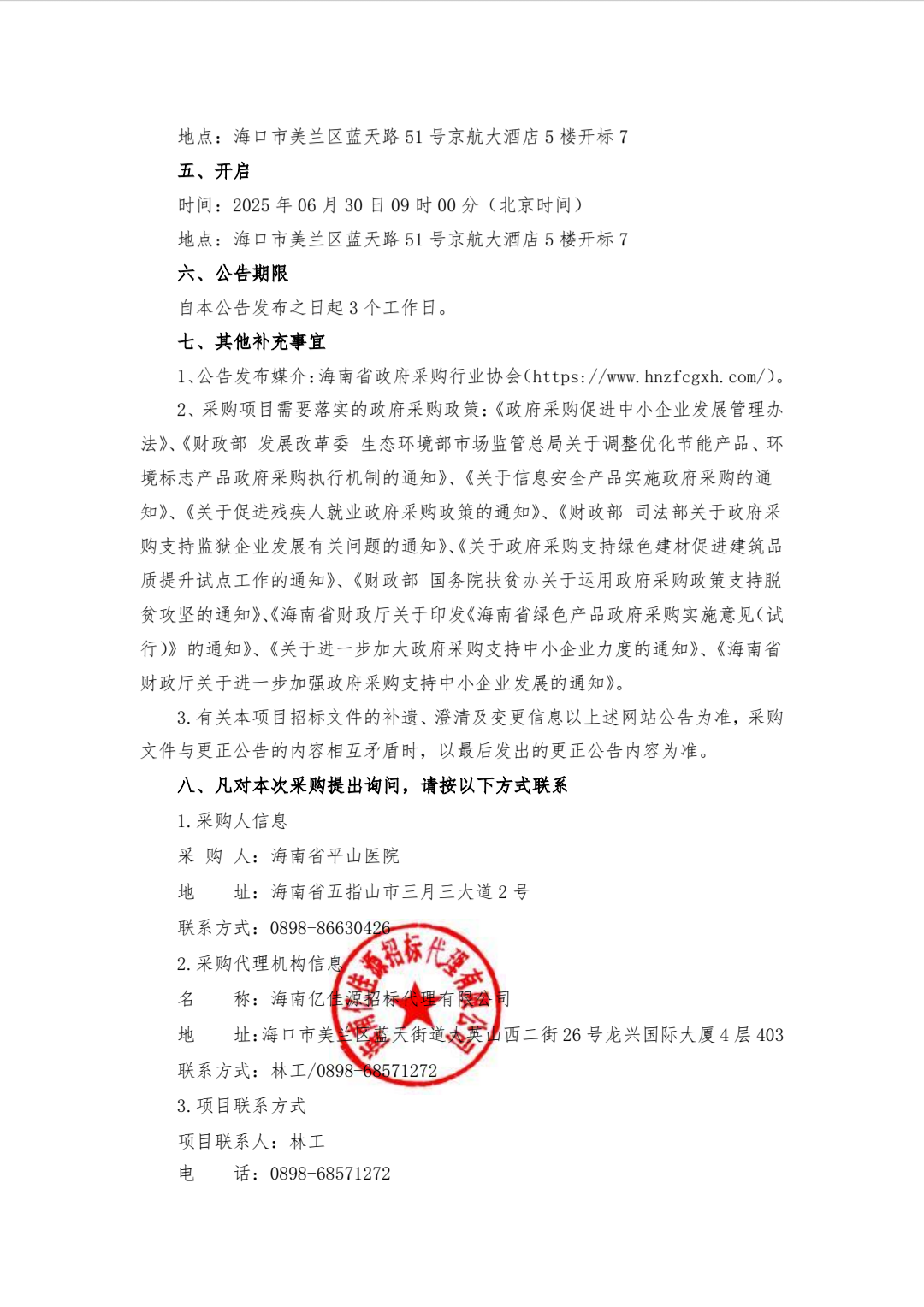 海南省平山医院保安室视频监控扩容项目成交结果公告