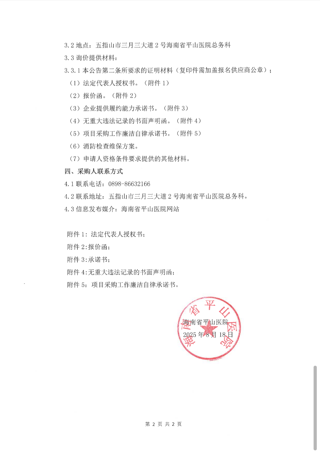 海南省平山医院2025年消防设施维保检测项目遴选公告