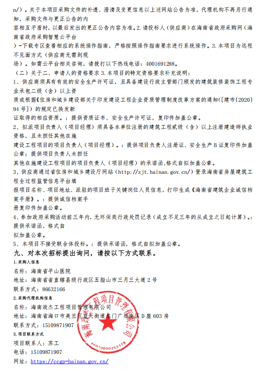 海南省平山医院住院大楼病区改造项目竞争性磋商公告
