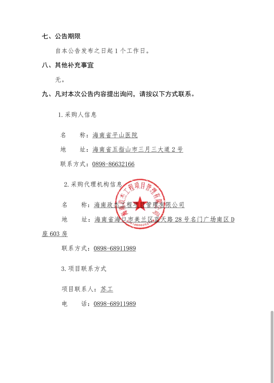 海南省平山医院住院大楼病区改造项目建设工程监理—成交结果公告