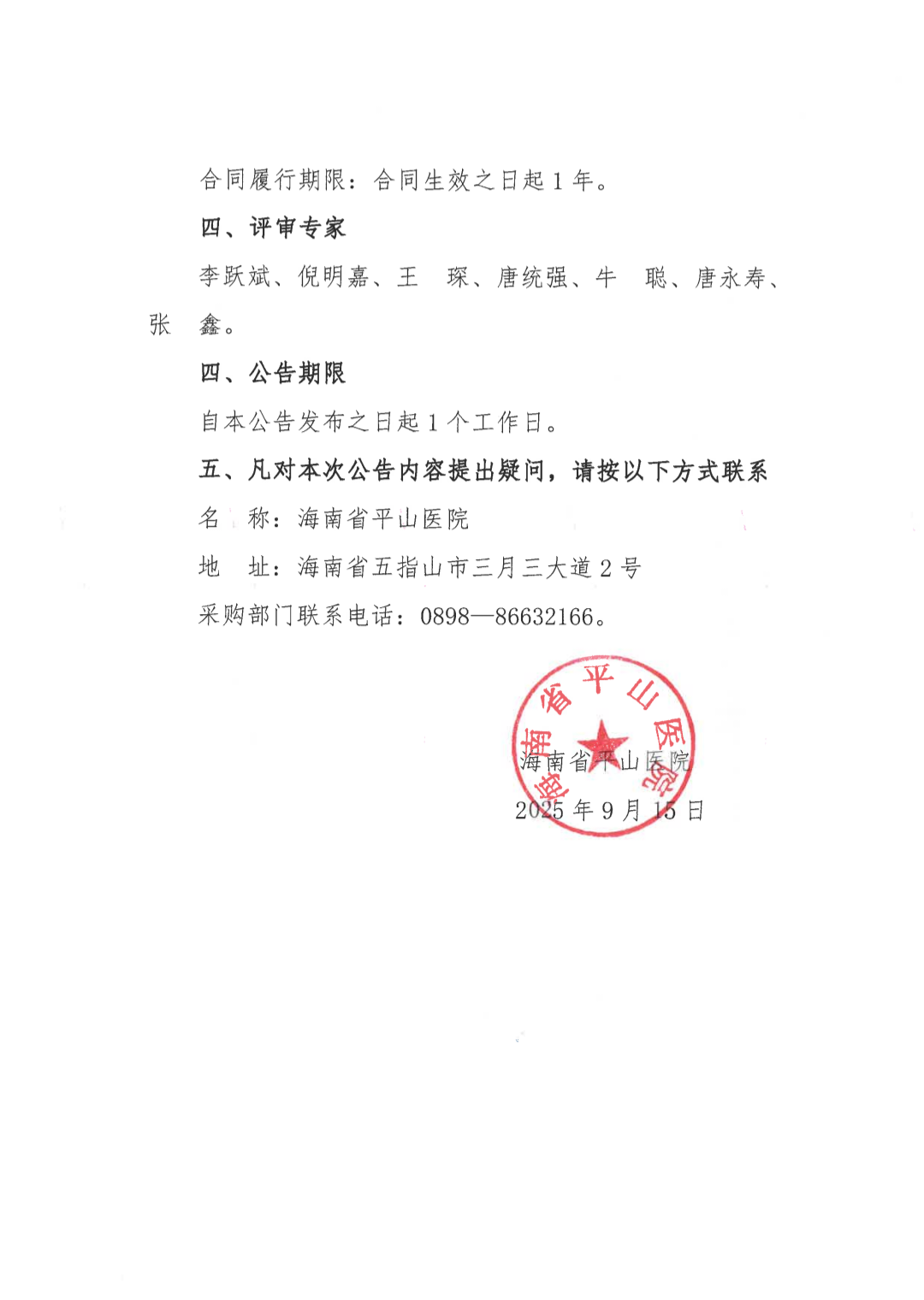 海南省平山医院2025年消防设施维保检测项目成交公告