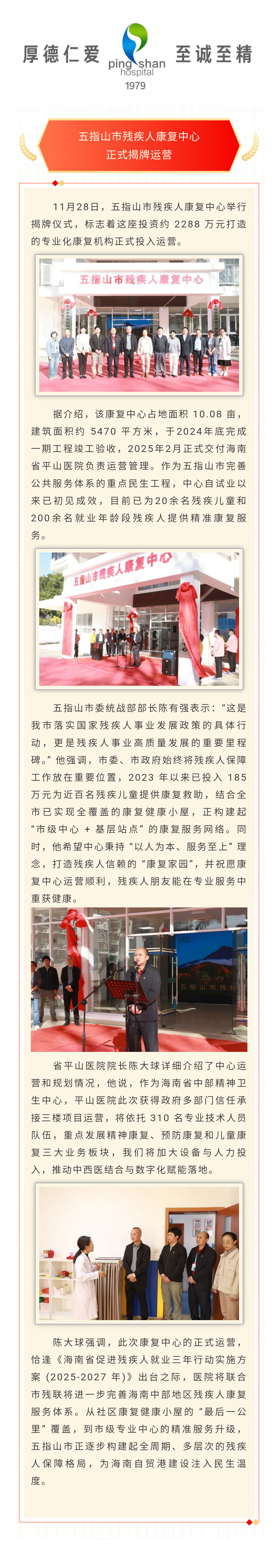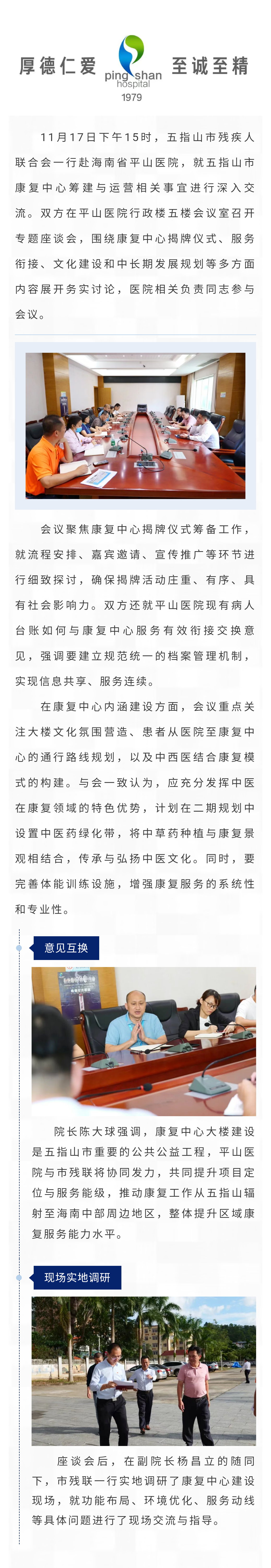 五指山市残联赴省平山医院 共商康复中心建设 推动中部地区康复事业高质量发展