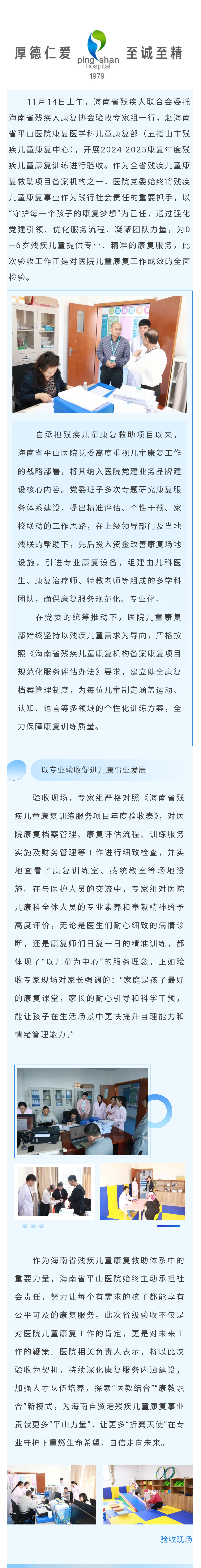 省残疾人康复协会赴省平山医院对儿童康复工作进行验收