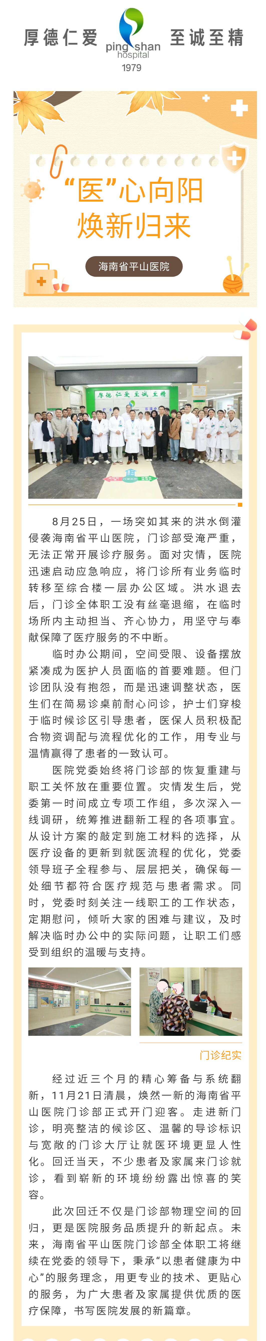 “医”心向阳 焕新归来——省平山医院门诊部11月21日正式回迁