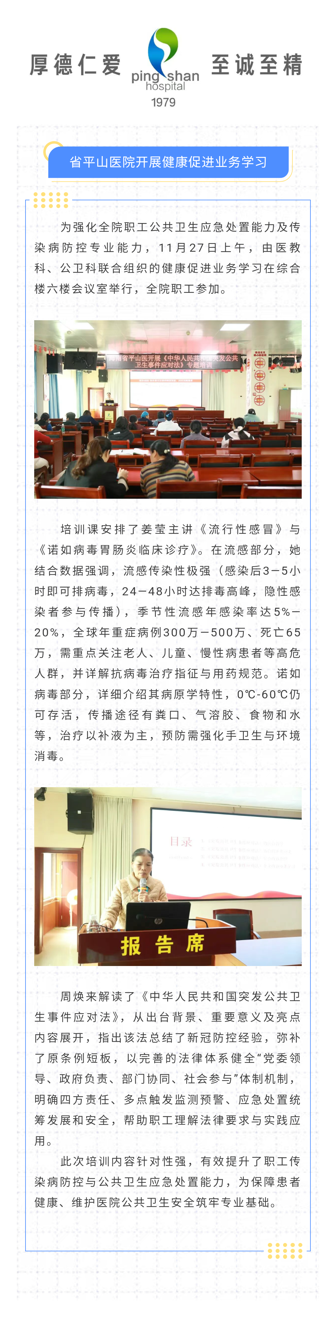 省平山医院开展健康促进业务学习 提升公共卫生应急与传染病防控能力