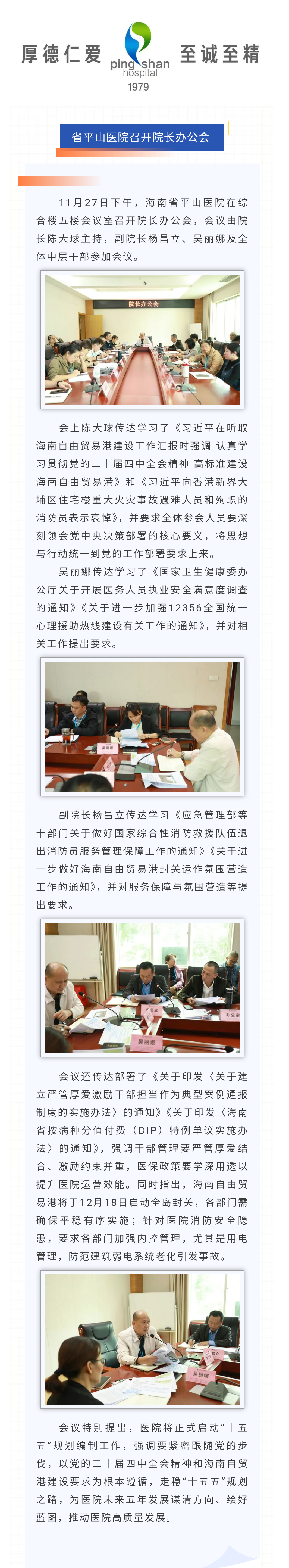 省平山医院召开院长办公会 传达学习相关文件精神并提出相关工作要求