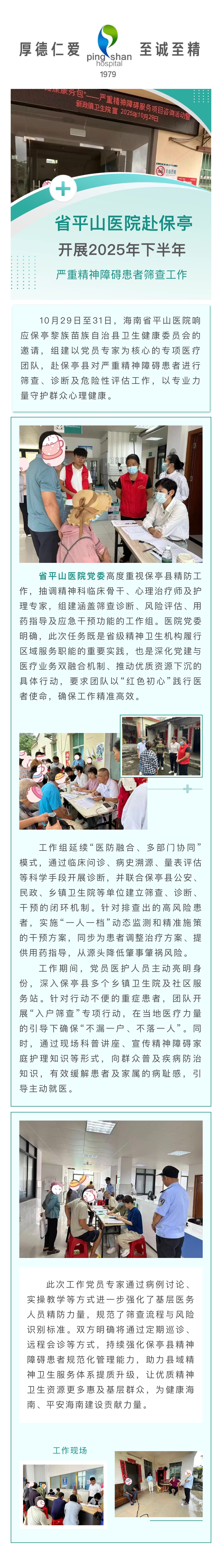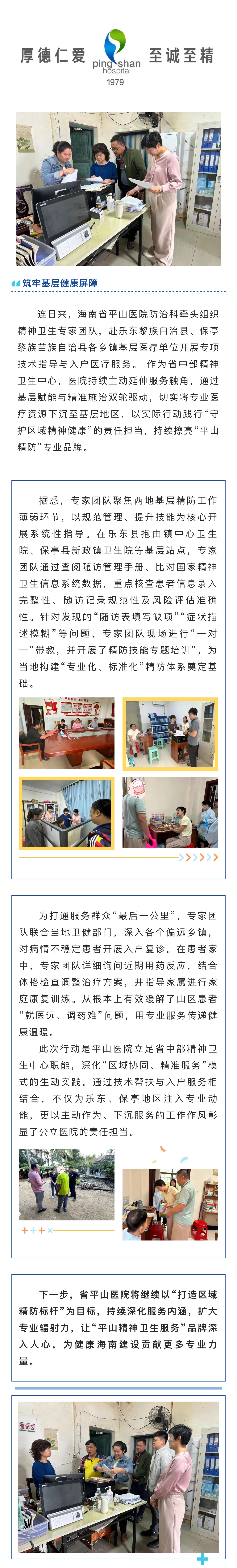 省平山医院加强乐东、保亭等地精防工作 筑牢基层健康屏障