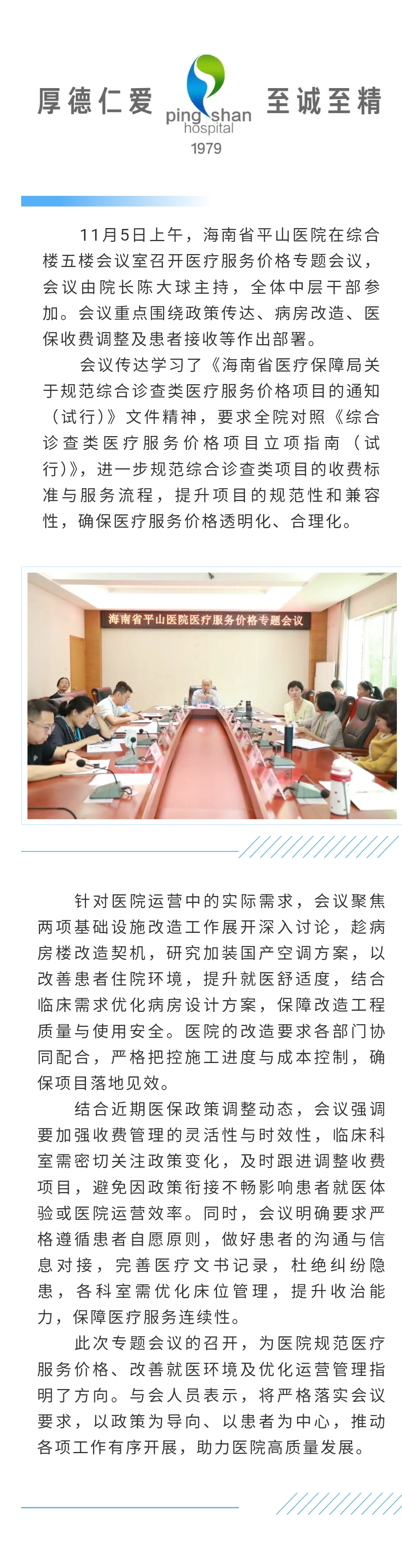 省平山医院召开医疗服务价格专题会议 部署病房改造与医保收费优化工作