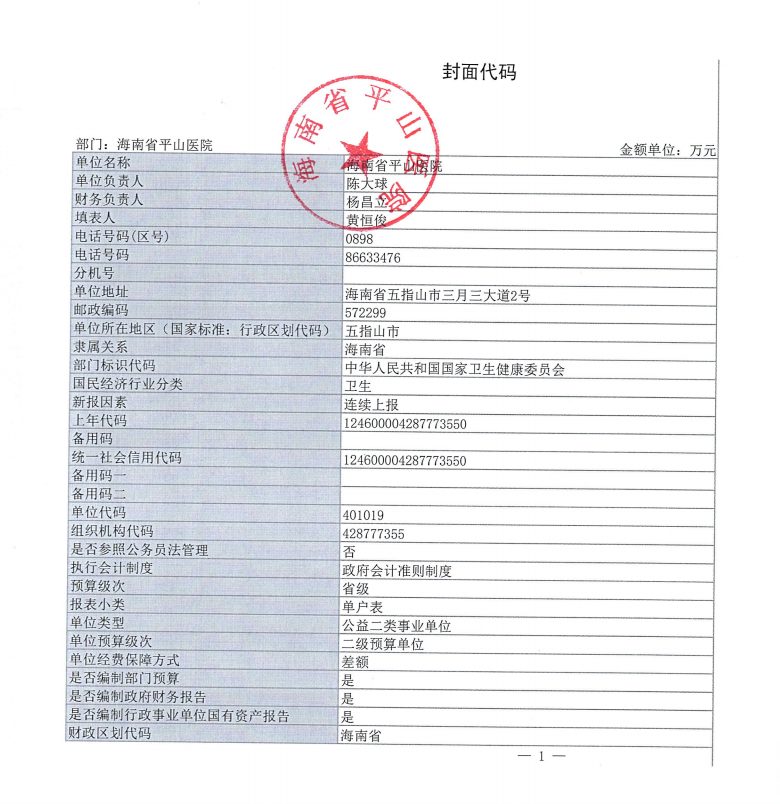 附件1:海南省平山医院2024年海南省省本级部门决算公开表