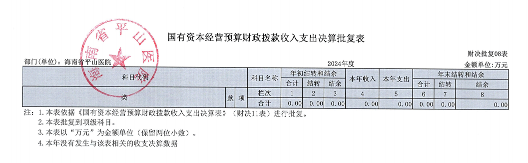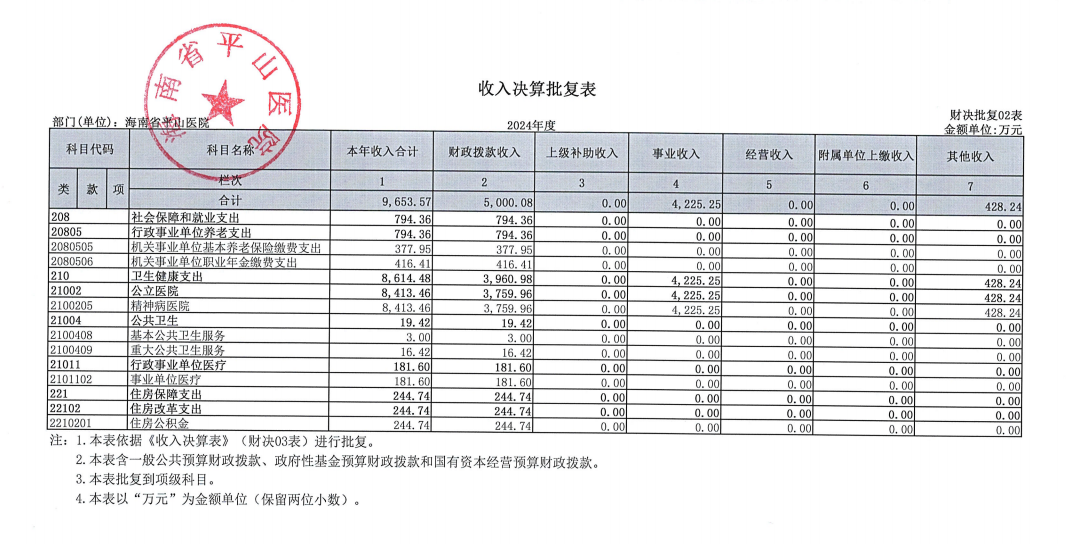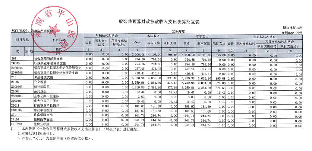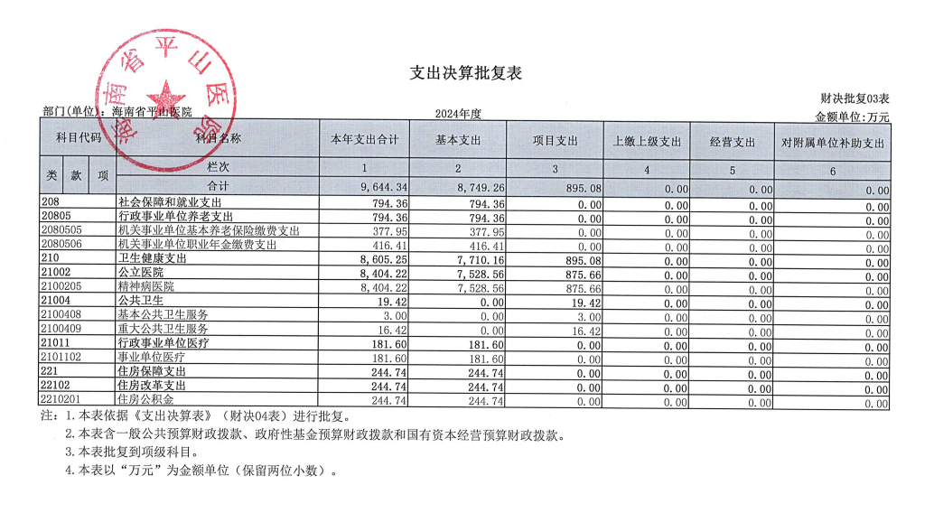海南省平山医院2024年度部门决算公开报告