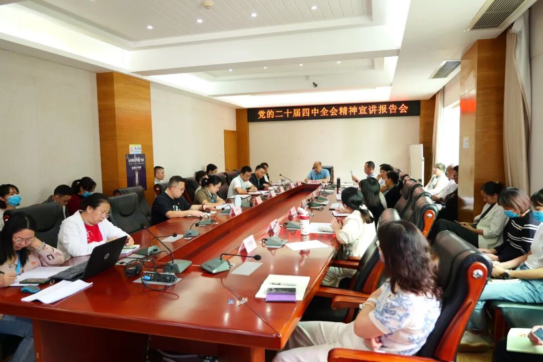 11月17日上午10时,海南省平山医院举行“党的二十届四中全会精神”宣讲报告会。会议由院党委副书记、院长陈大球主持,医院领导班子成员、中层干部及各党支部书记参加。