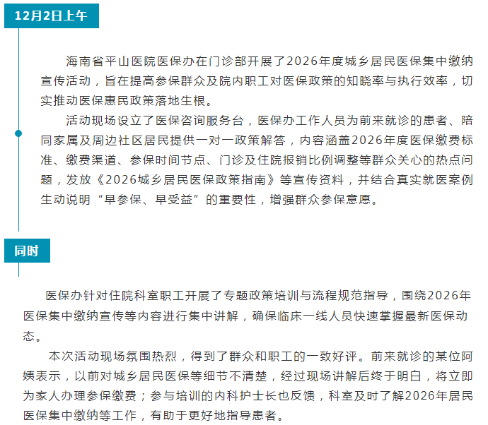 海南省平山医院医保办开展2026年度城乡居民医保集中缴纳宣传活动