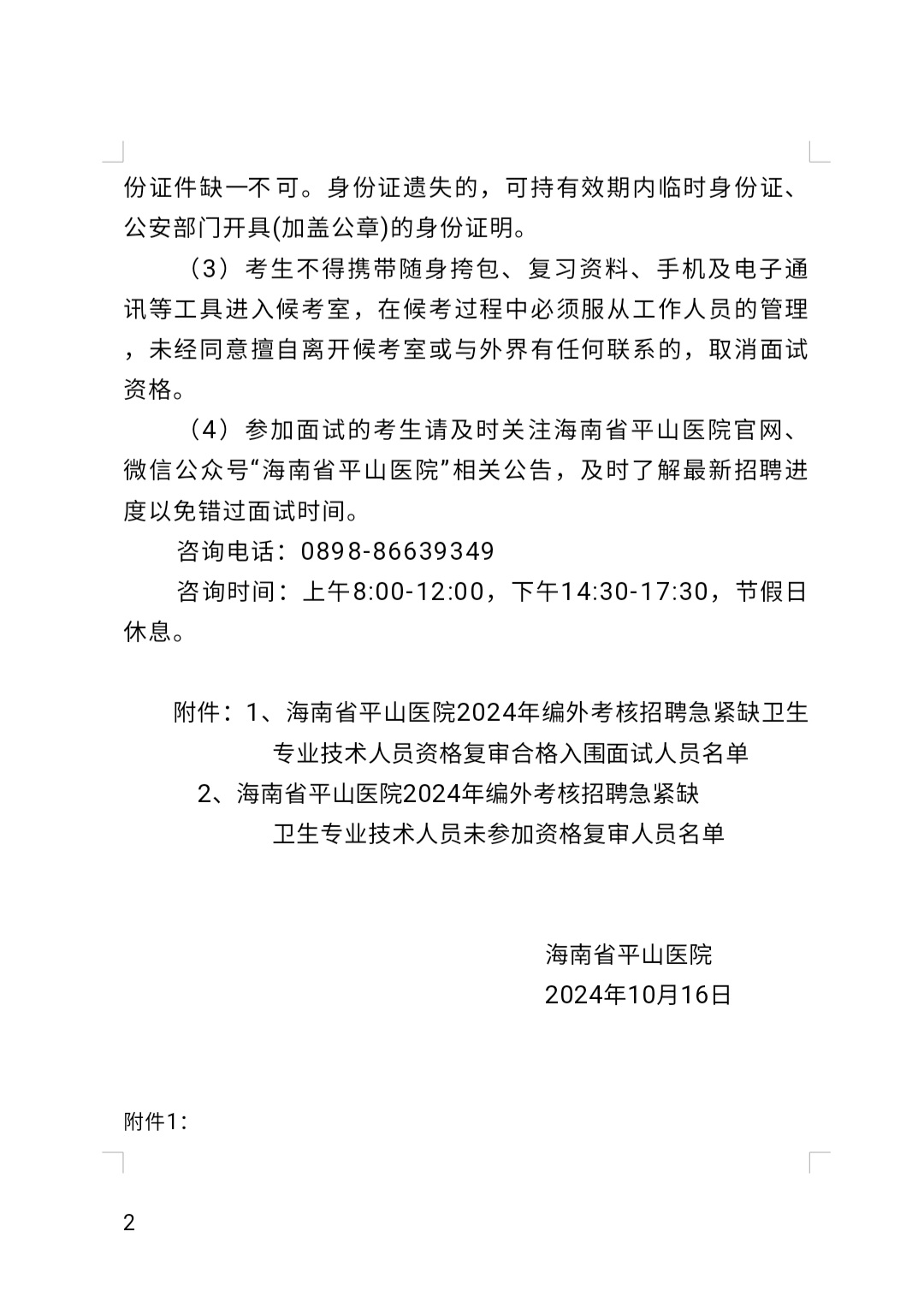海南省平山医院2024年编外考核招聘急紧缺卫生专业技术人员公告(第5号)