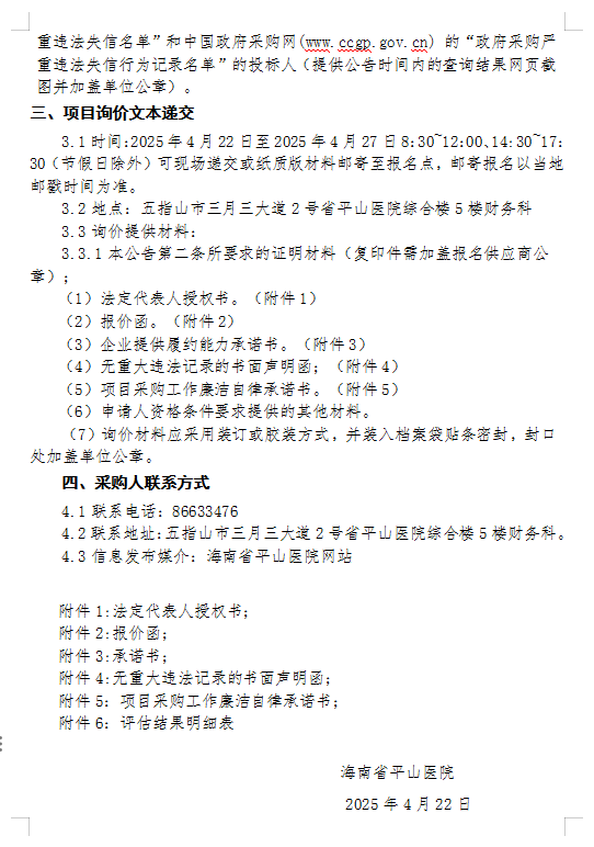 海南省平山医院拟报废资产评估项目院内询价公告
