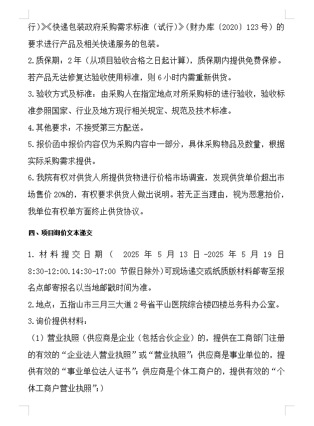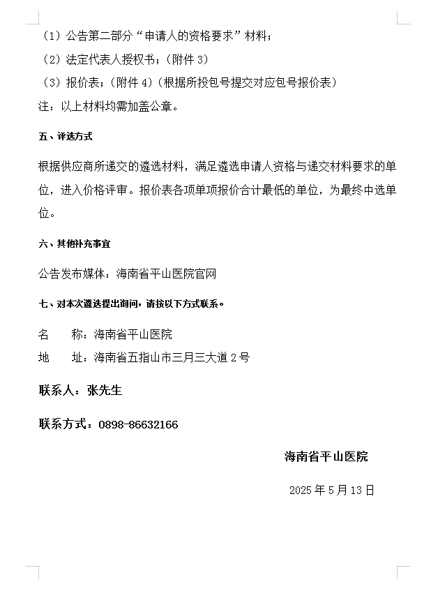 海南省平山医院办公用品、电脑耗材、电器维修类定点供应商遴选公告