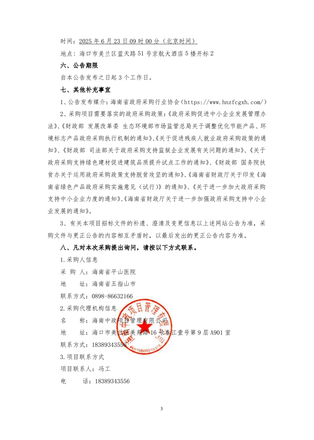 海南省平山医院保安室视频监控扩容项目竞争性磋商公告