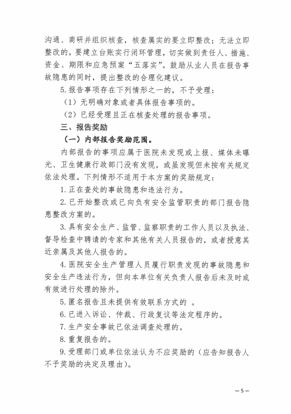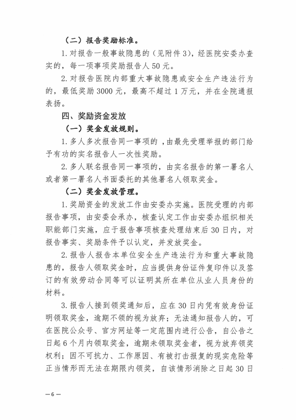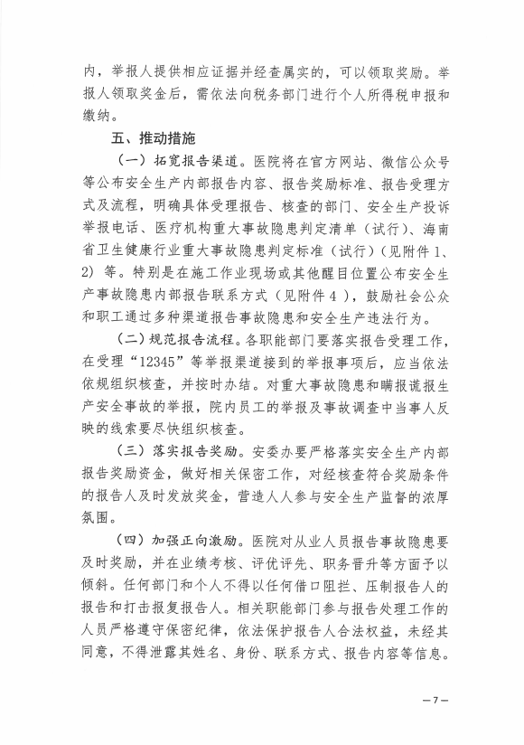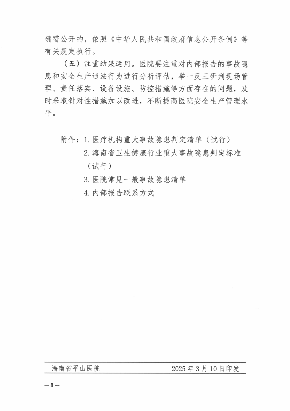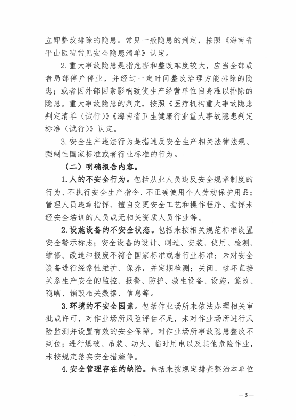 海南省平山医院关于印发《安全生产事故隐患内部报告奖励制度》的通知