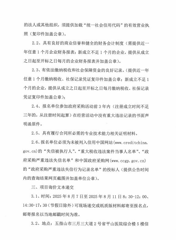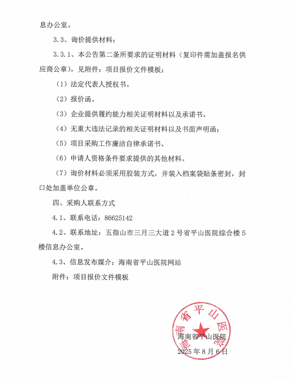 海南省平山医院官方网站迁移升级项目院内公开询价公告