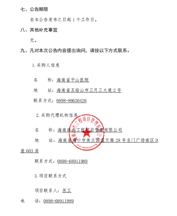海南省平山医院医学检验服务外包项目成交结果公告