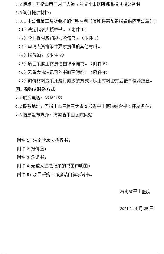 海南省平山医院2021年预算项目绩效管理项目院内询价公告