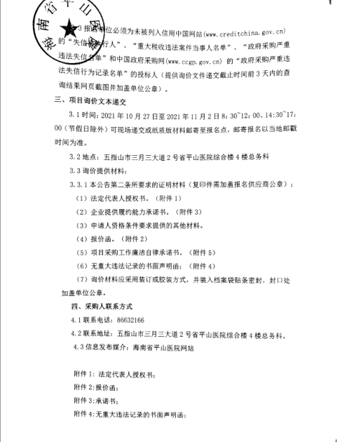 海南省平山医院智慧党建平台项目(竞争性磋商公告)